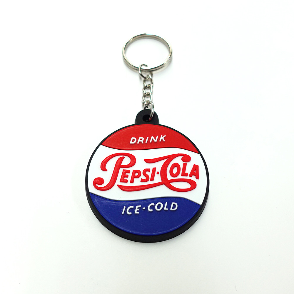 - ラバーキーホルダー PEPSI ICE-COLD ペプシ ラウンド (5x5.7cm) キーリング アメリカン雑貨