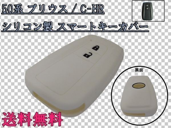 - 送料込 送料無料 新型 50系 プリウス / C-HR CHR スマートキー ケース カバー シリコン製 ホワイト/白 検) LED ライト パーツ 最安 特価