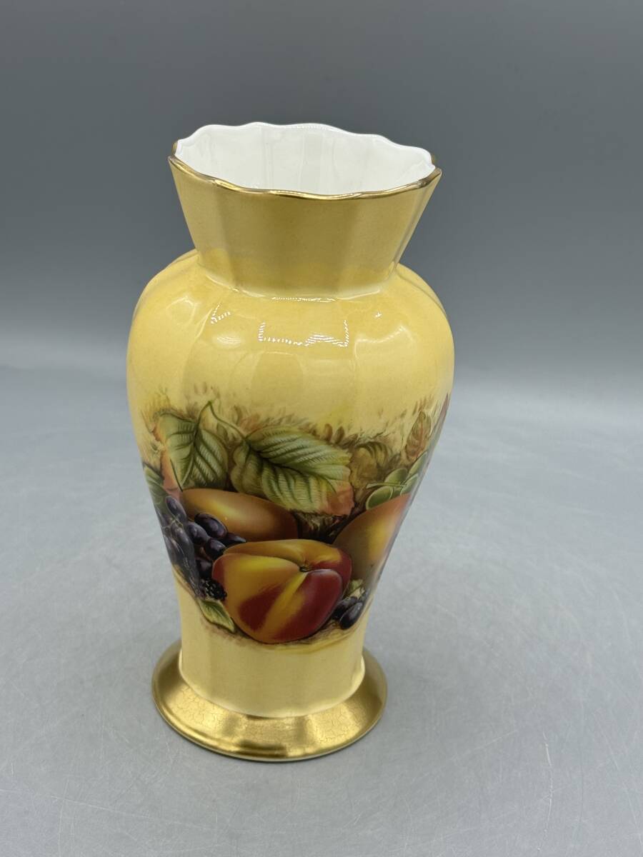 > エインズレイ オーチャードゴールド フルーツ柄 花瓶 フラワーベース フリル 高さ16cm 果実 桃 葡萄 (4)