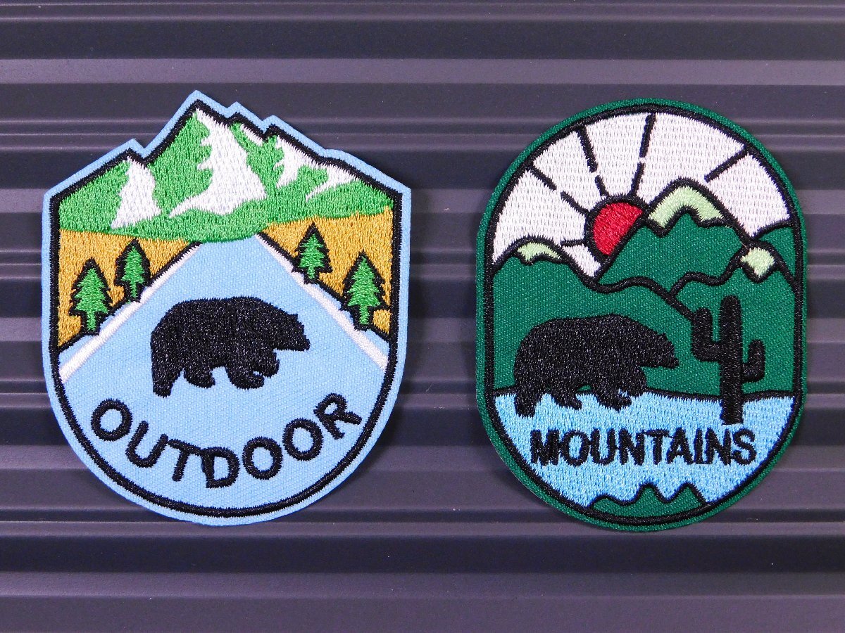 - ◆送料\110◆【アウトドア・熊】※《アイロン刺繍ワッペン/2点セット》 アメリカン雑貨 刺繍ワッペン アイロンワッペン