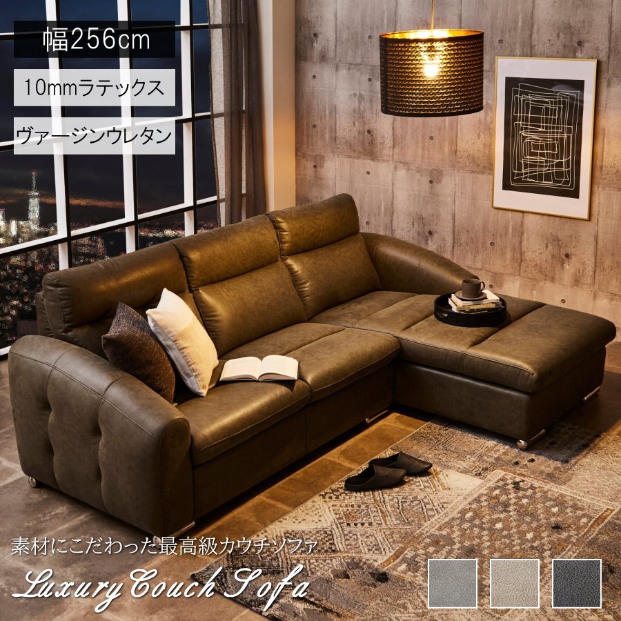 > カウチソファ レザーファブリック ラテックス ヴァージンウレタン 最高級 おしゃれ 大型 3人掛け■送料無料(一部除)新品未使用■A45L-R1