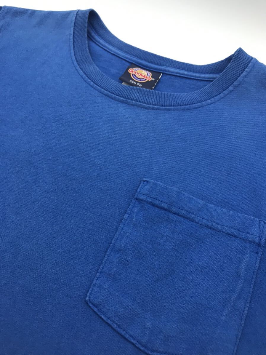 - 【アメリカ製】グッドウェア 半袖goodwear ポケットTeeシャツ /青系/M/キャンバー