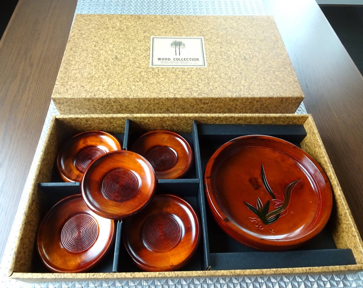 - 【天然木】【昭和レトロ・WOOD COLLECTION】天然木茶托5枚&菓子器1個セット★CRAFT MIYAMOTO CO.LTD★☆