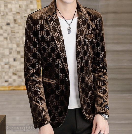 - ブレザー 新入荷 テーラードジャケット 折り襟 スリム 柄物 メンズ トップス 紳士 カジュアルスーツ おしゃれ サイズ選択可 コーヒー/2XL