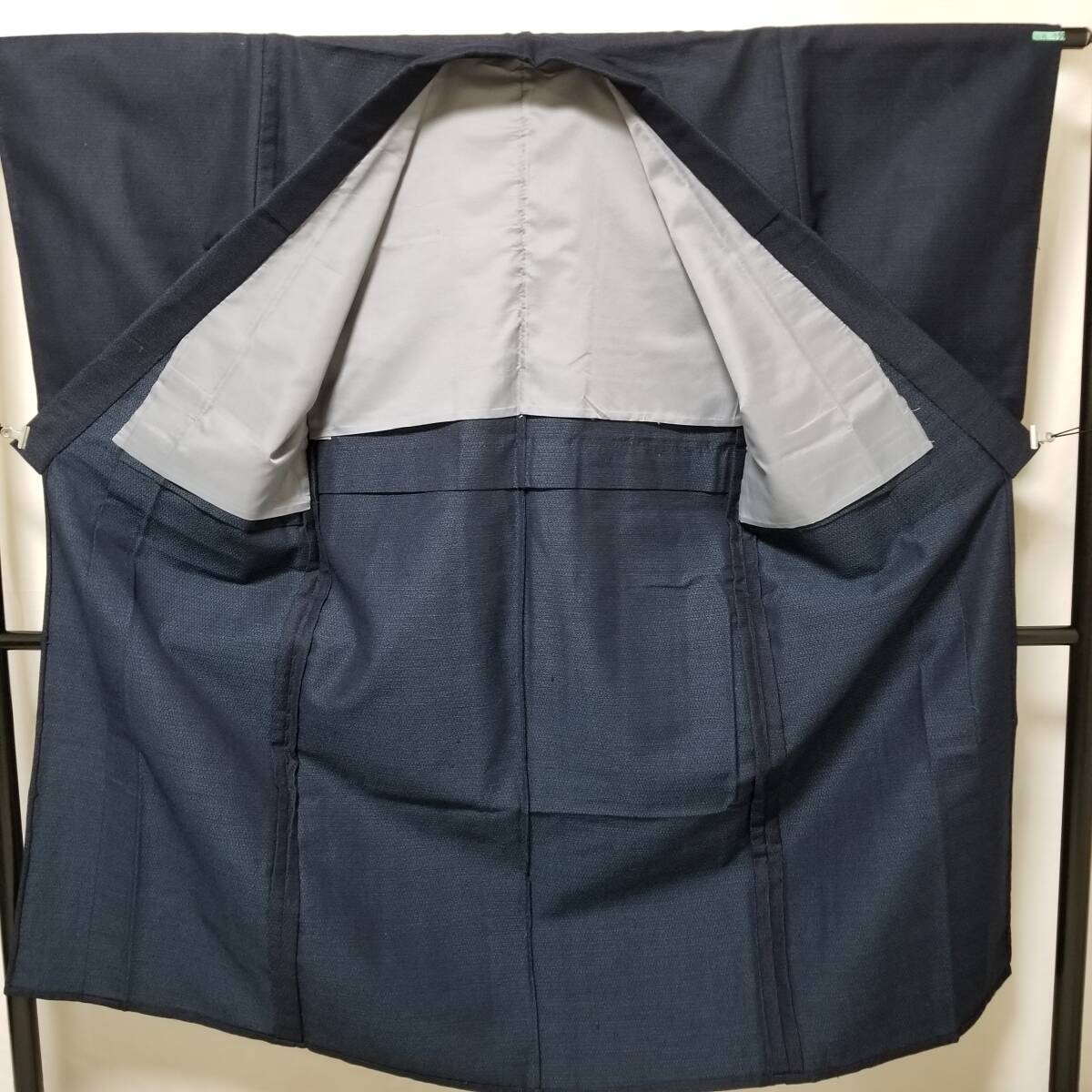 - 【桐徳】紳士物☆ウ-ル着物*藍鉄色地*5%値下げ*M寸{西陣織*ウ-ル*単衣着物}M寸*丈140-裄65*藍鉄色地*黒.茶.青藍糸糸での亀甲織*№6873