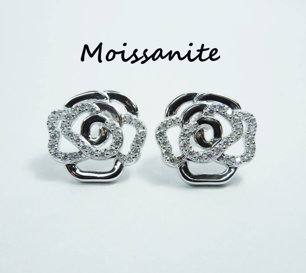 - 薔薇 モアサナイト ペアピアス スタッドピアス 新品 バラ 花 S925 シルバー925 ピアス 両耳用 フラワー 大きめ 大ぶり