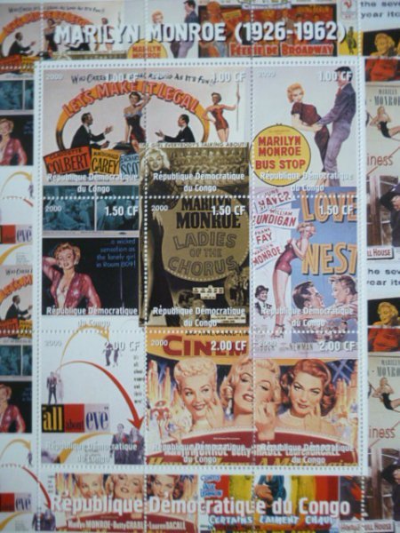 - コンゴ切手『マリリン・モンロー』9枚シート 2000 C