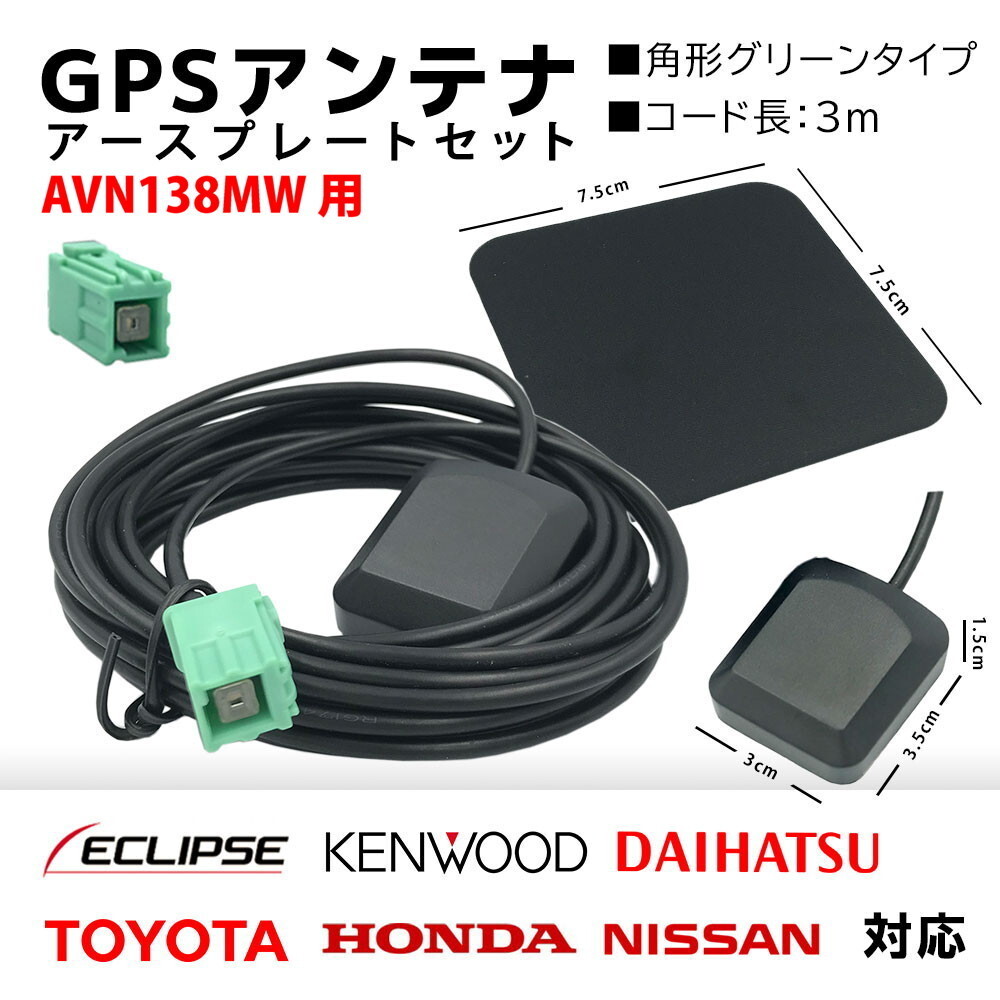> AVN138MW 用 イクリプス GPS アンテナ 置き型 底面 マグネット タイプ 高感度 角形 グリーン カプラーオン アースプレート セット