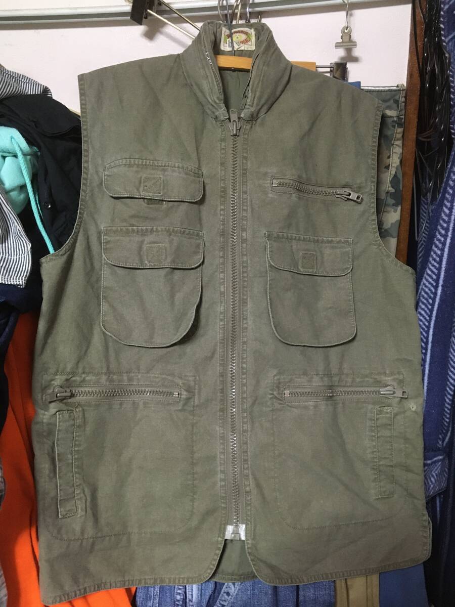 > 2410ビンテージ80's旧タグバナナリパブリックBANANA REPUBLICフード付サファリSAFARIベストMハンティングHUNTINGジレOLDオールド古着USED