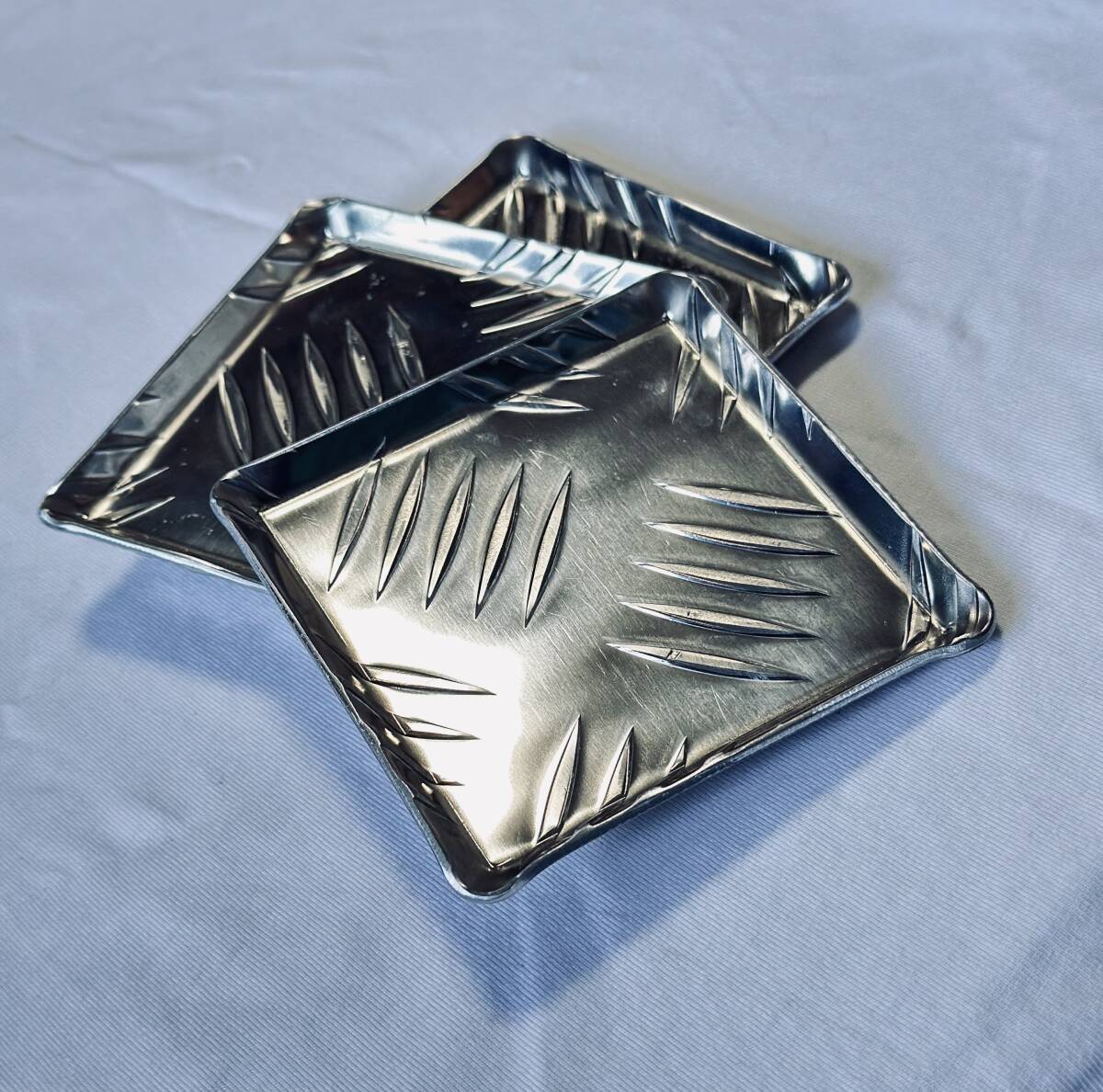 - ★アルミ縞板製 受け皿 小物入れ コースター等様々 (中)★