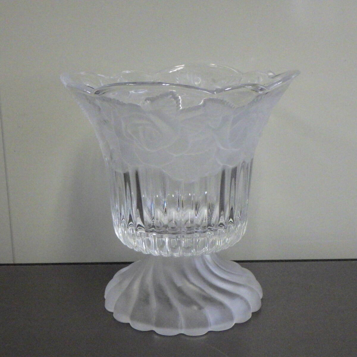 - 【RS】 昭和 レトロ アンティーク 花瓶 足付き ローズボール SOGA JAPAN 曽我ガラス 現状品 詳細不明【0076】