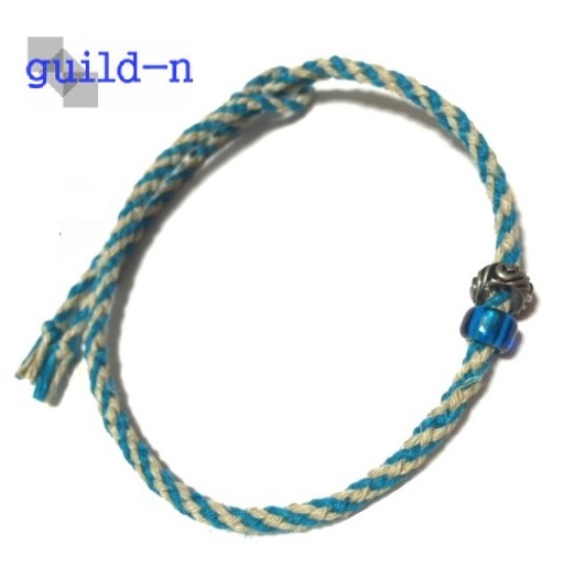 - guild-n ★ マリンブルー+麻色 青 並太 ヘンプ 麻 アンクレット 足用 ミサンガ メンズ レディース 両用 サイズオーダー可