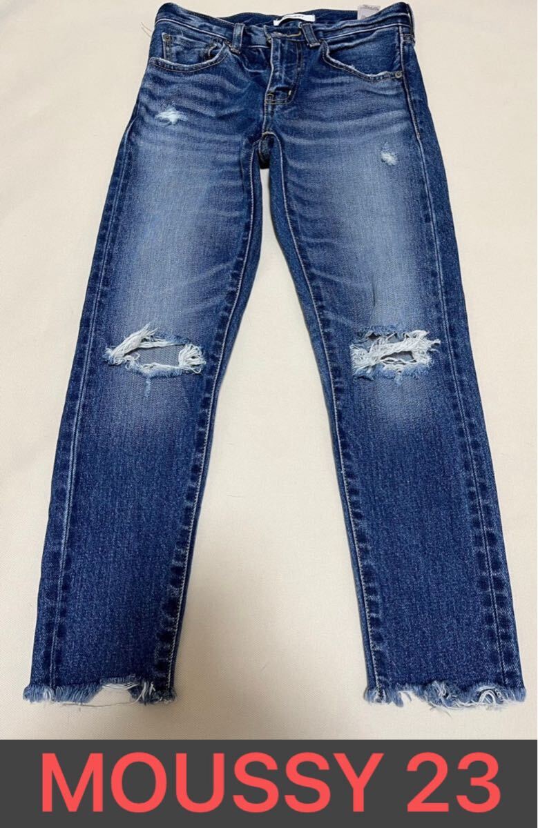 > MOUSSY/マウジー23クラッシュストレッチデニムジーンズカットオフ切りっぱなし ボーイズシルエット ユーズド加工