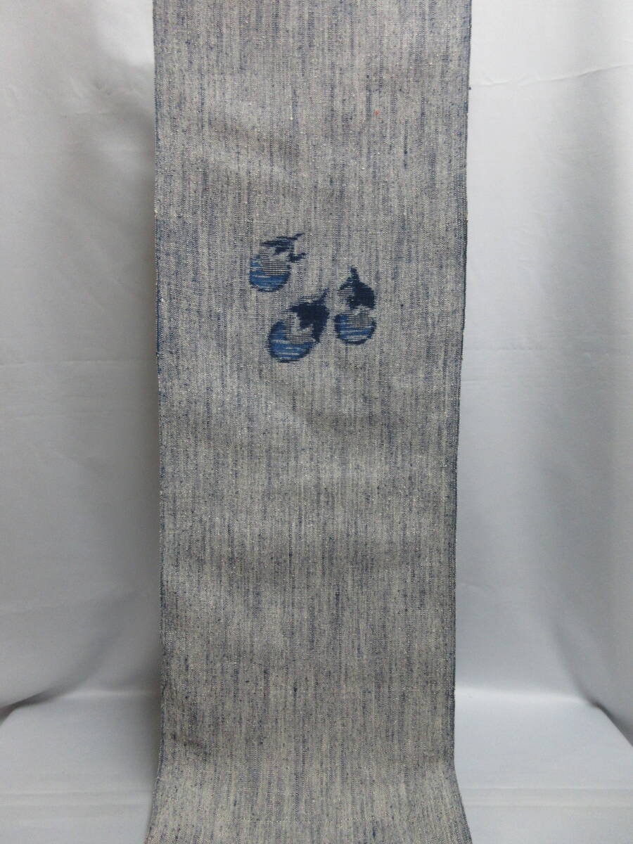> ◇ 【訳あり品】 正絹 八寸帯 茄子の柄 08530