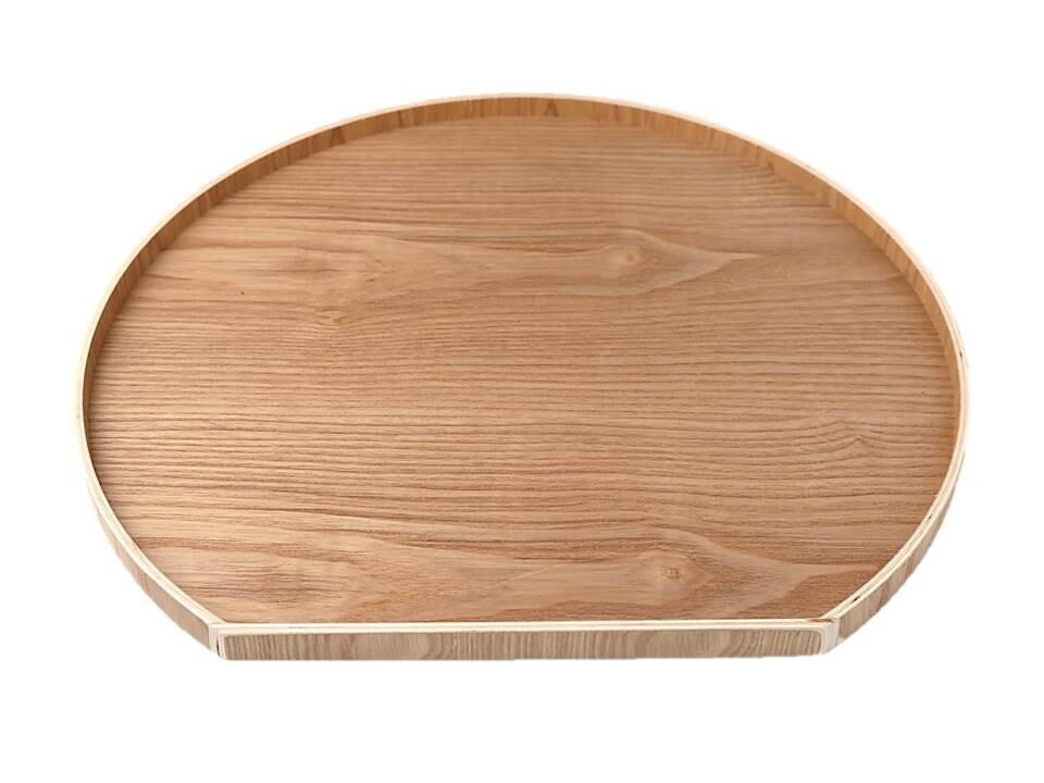 - 木製プレート36cm幅の半月膳トレイ/ナチュラル白HGT-02-waka<木製 ウッド プレート トレイ キッチン 料理 コーヒー皿トレー>