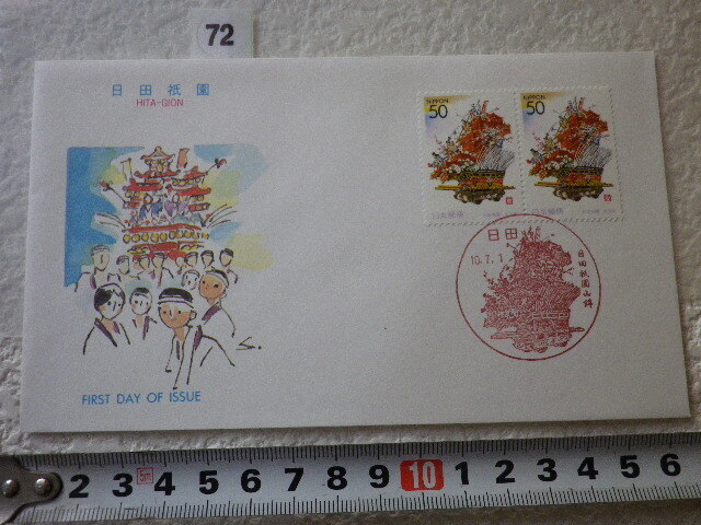 - FDC ふるさと切手 日田祇園・大分 2貼1消 解説書有●72●同梱大歓迎