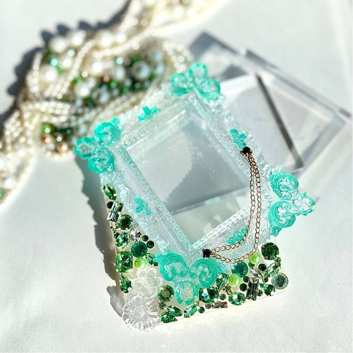 - トレカケースデコ B8 硬質ケースデコ アンティーク風 ビジュー 量産型 ゴシック 緑 グリーン クリア 韓国 カードケースデコ 推し活