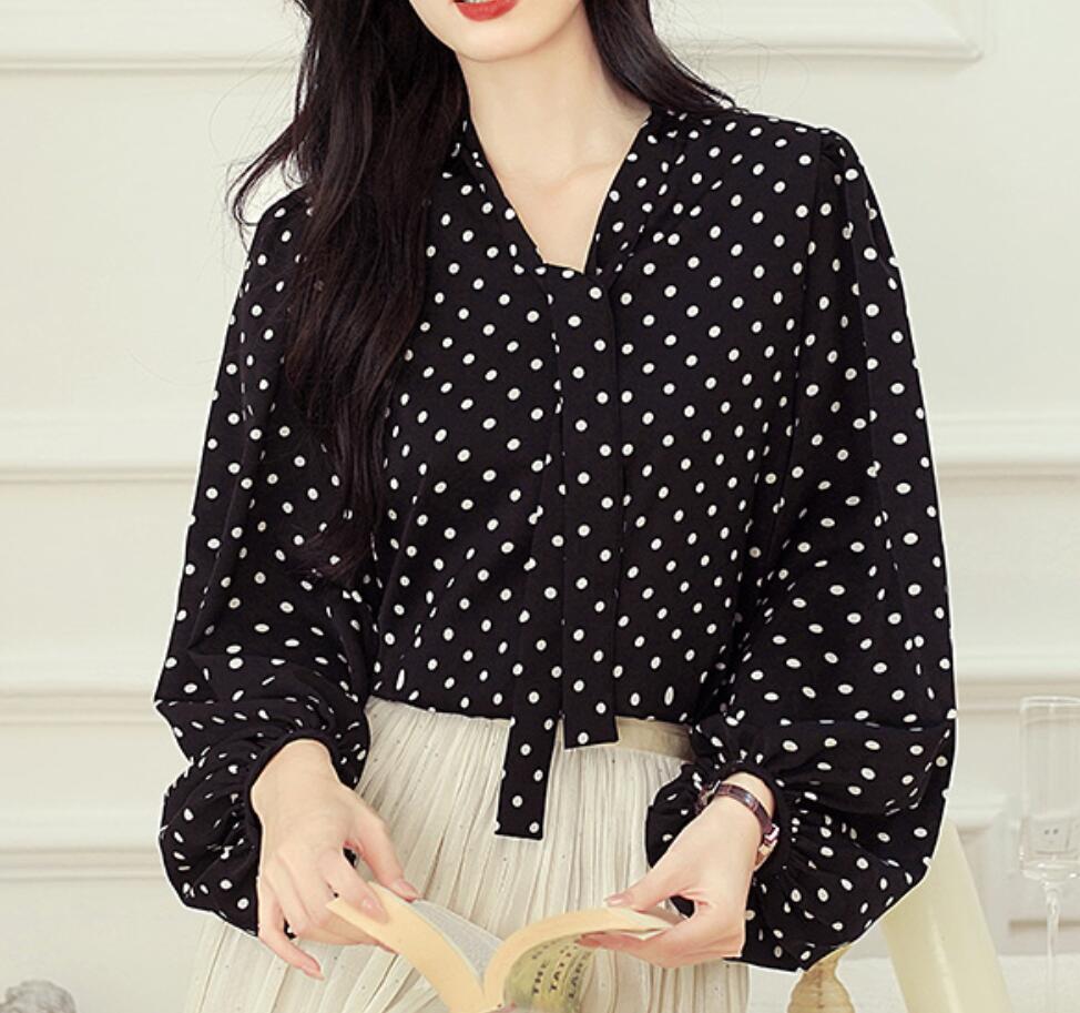 - 秋冬推薦 / ボウタイブラウス 長袖 レディース シフォン シャツブラウス ドット柄 トップス 入学式 卒業式 通勤 OL ママ オフィス フォーマ