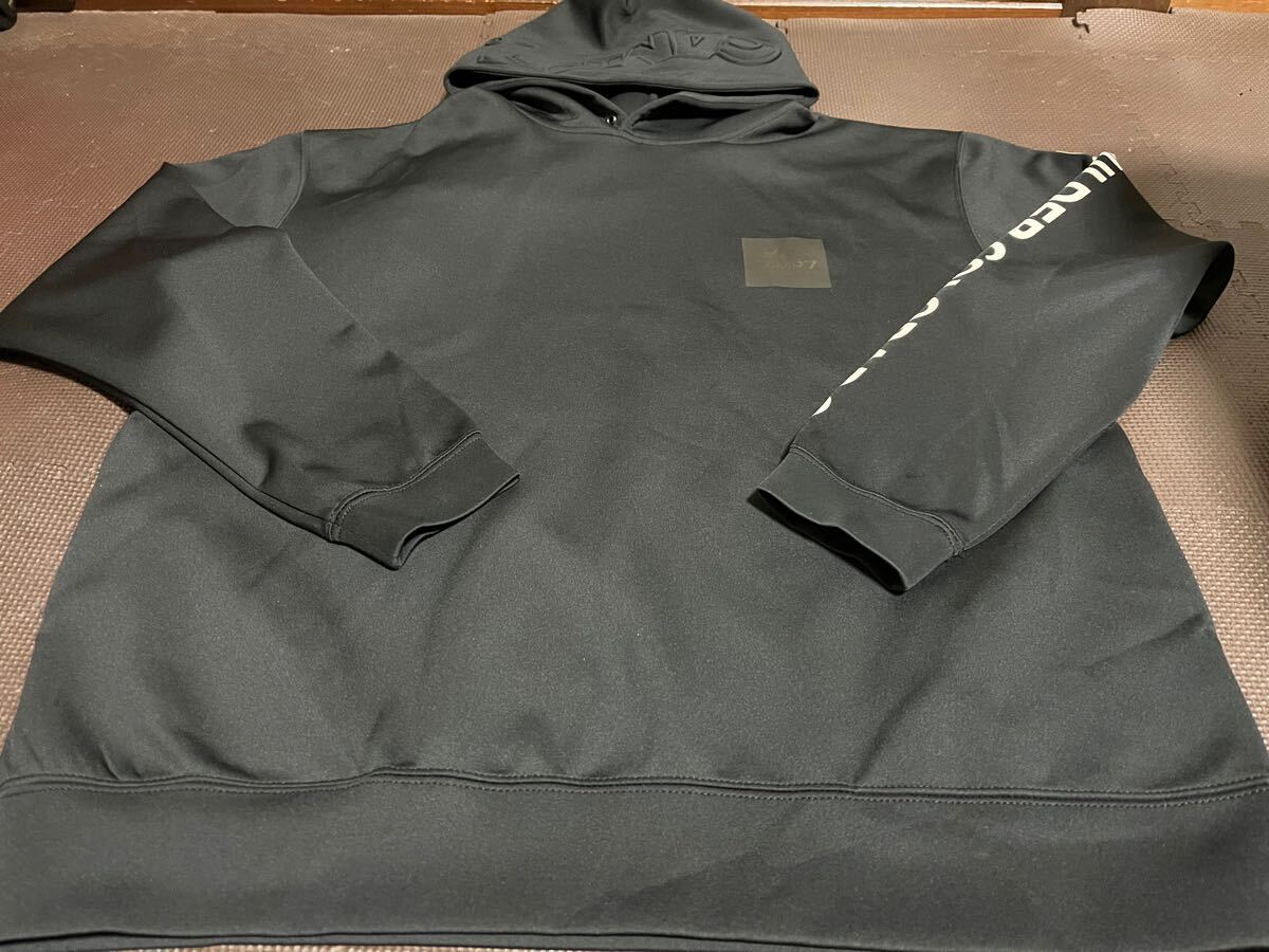 - 新品CANP7黒、ロゴ黒、袖ロゴ白フードロゴエンボス超ストレッチパーカー サイズM