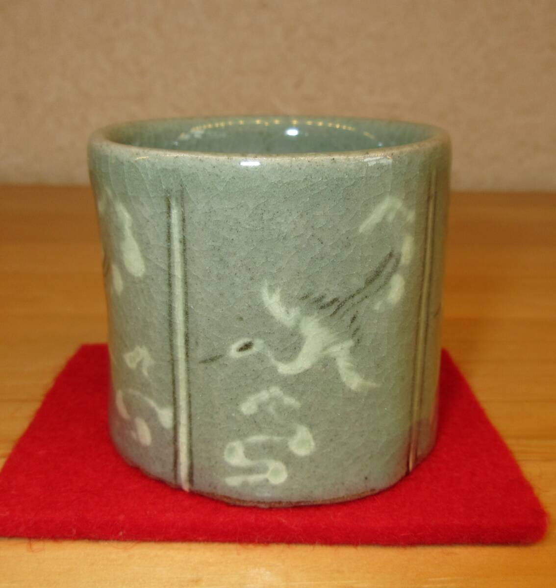 - 【逢絢亭】茶道具 蓋置 高麗 青磁 雲鶴蓋置 廣州窯 共箱入り