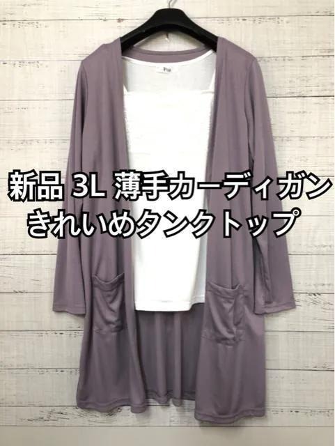- 新品☆3L♪パープル×白系♪薄手カーディガン&レースタンクトップ☆b259