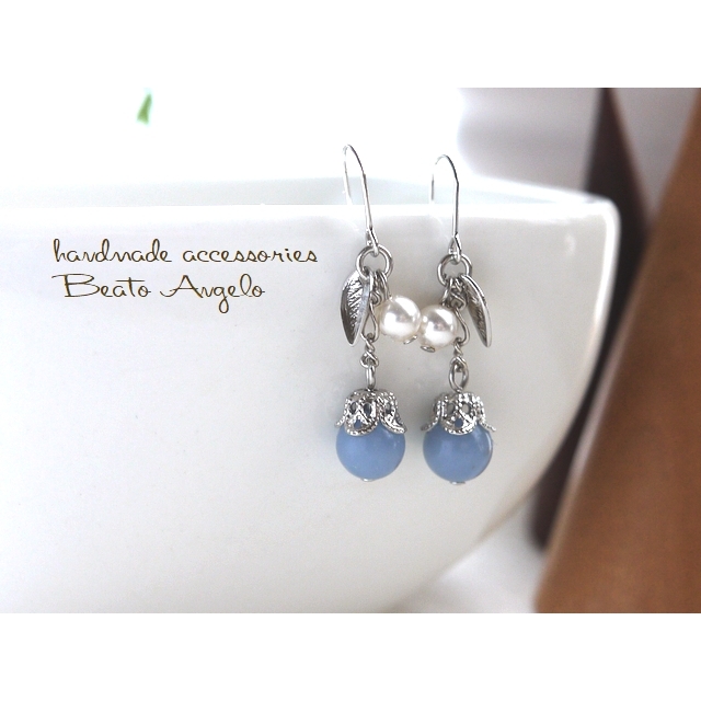 - ◇◆+angelo+天然石エンジェライトとパールのプチピアス(p-036)S プチ001 サックスブルー