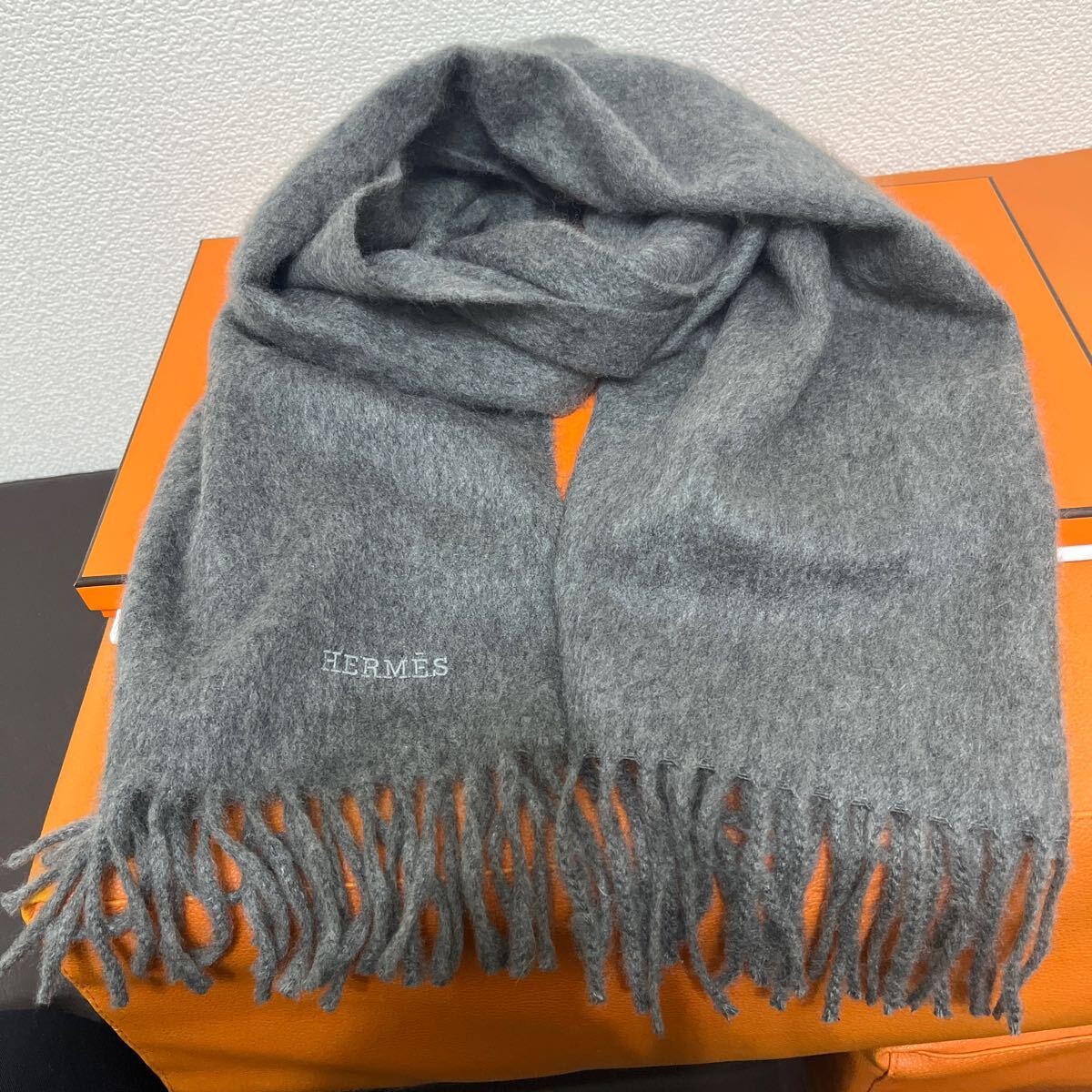 - HERMES エルメス マフラー ストール カシミヤ100% グレー系 箱有り マフラー