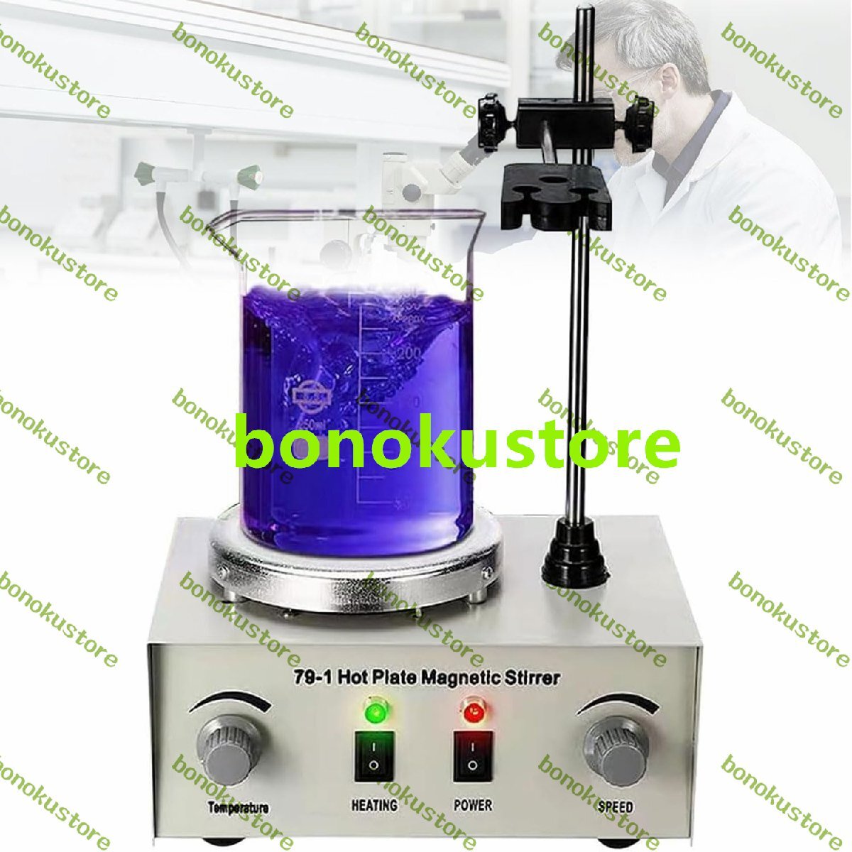 - 250W磁気加熱スターラー 1000mL電気デジタルディスプレイ磁気撹拌プレート無段階速度調整付き 100-2400RPM 最大100℃