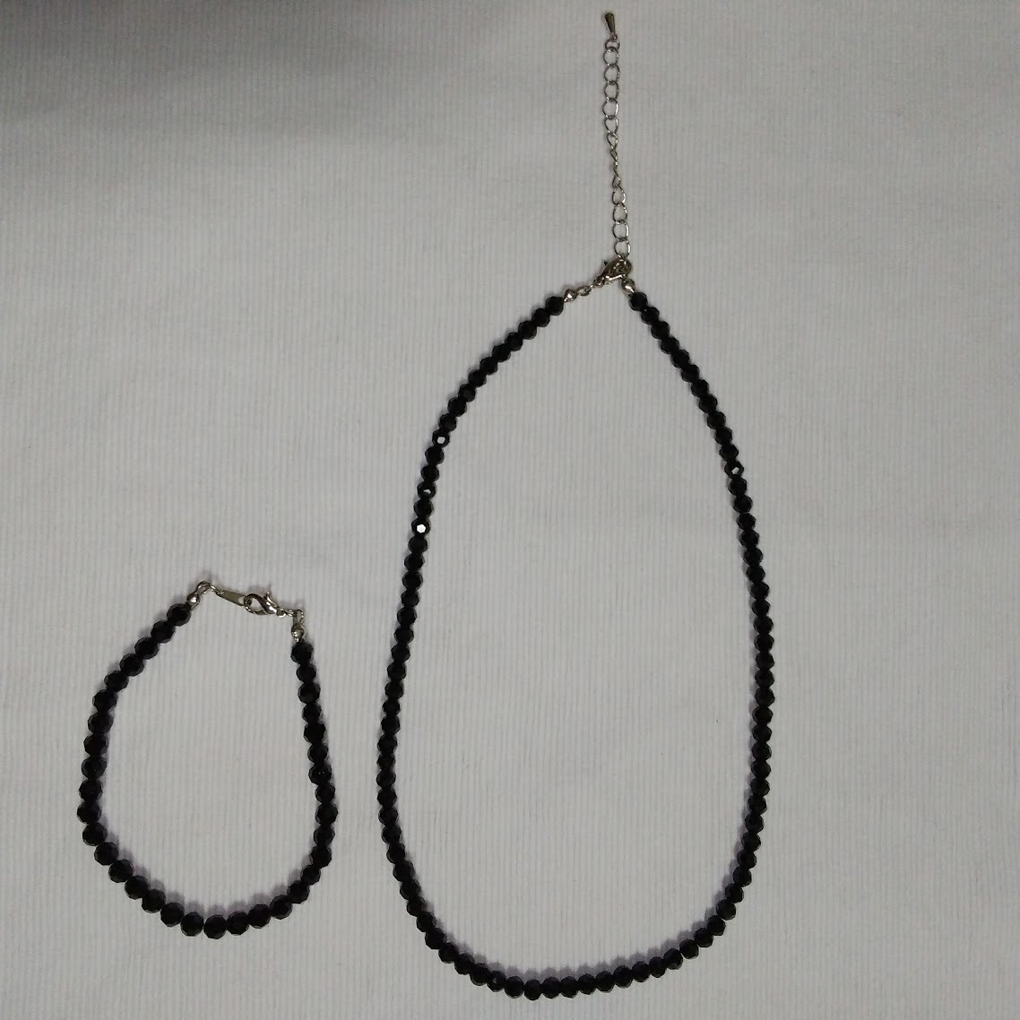 - 黒色カットビーズ ネックレス&ブレスレット セット