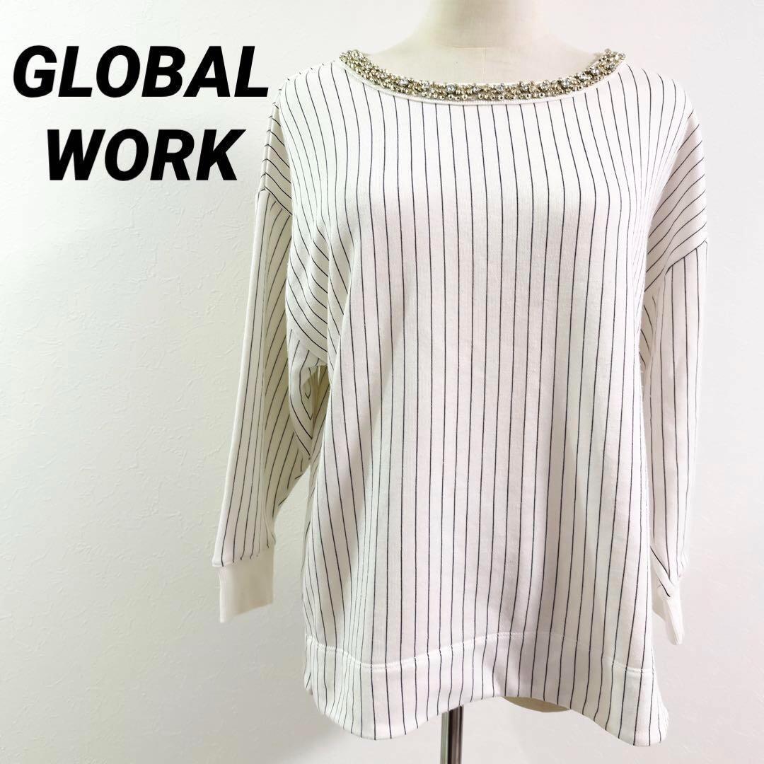 - GLOBAL WORK グローバルワーク カットソー ホワイト ストライプビーズ