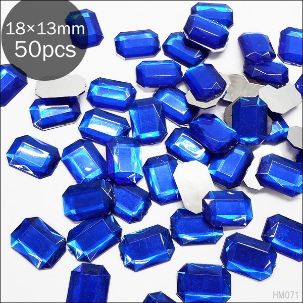 > 大粒 アクリルストーン (71) 長方形 八角形 青 50個入り 18×13mm ハンドメイド ビジュー ブルー デコパーツ 手芸用品/22ш