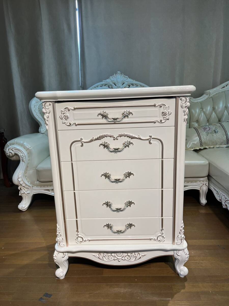 - 超激安限定 アンティーク ホワイト 5段チェスト 北欧風家具 姫系 姫かわ 木製 収納 ロココ様式 高級 ホワイト