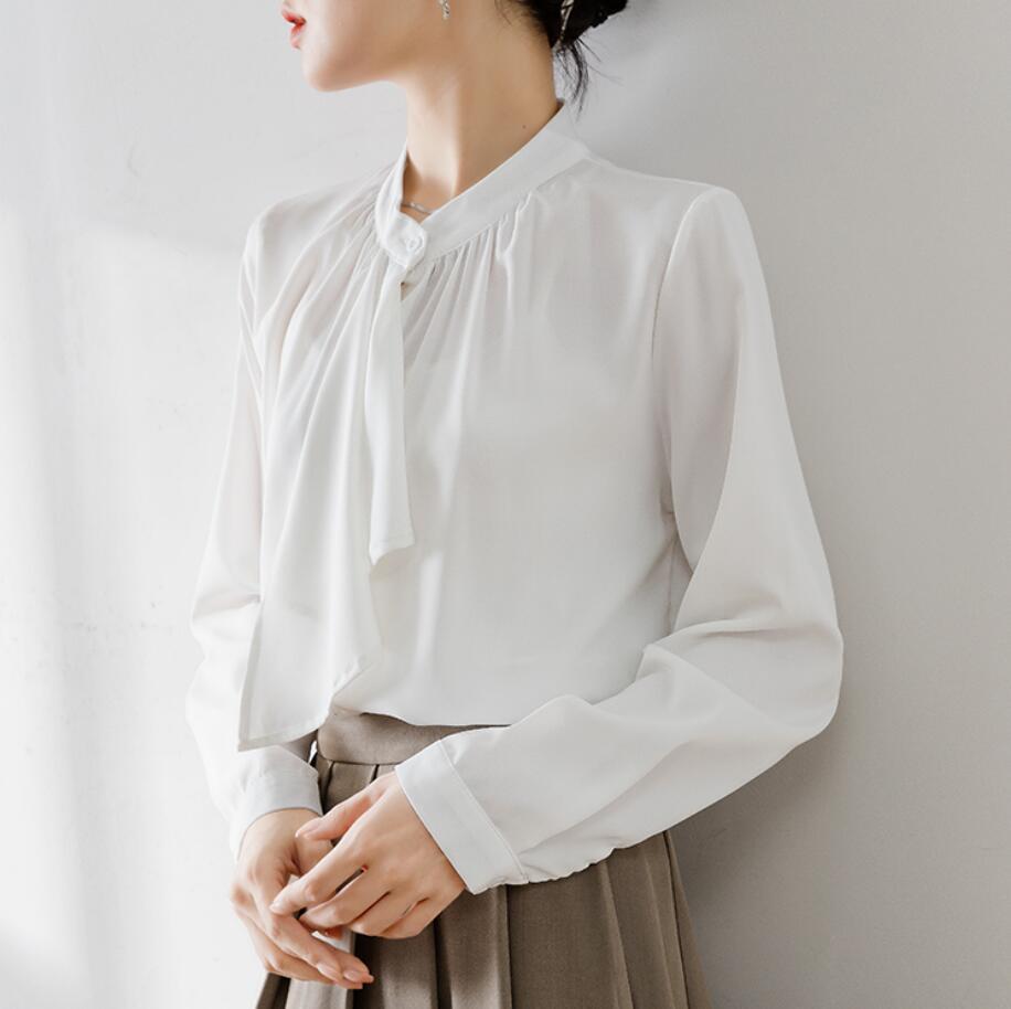 - 秋冬/上品 ボウタイブラウス レディース シャツ トップス 長袖 オフィス カジュアル 大人 シフォン シャツ OL 通勤 ブラウス /白
