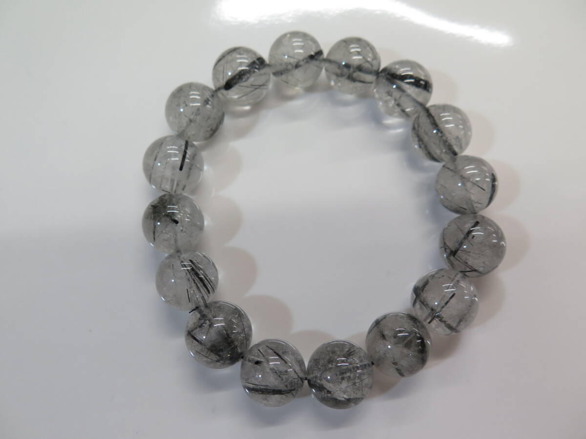 ④ 未使用保管品 ブラックトルマリンクォーツ 約13mm-16粒 約56g ブレスレット 魔よけ