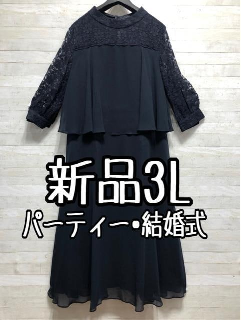 - 新品☆3L紺系♪すけ感レース袖♪ドッキングワンピース♪パーティ・結婚式〇p940