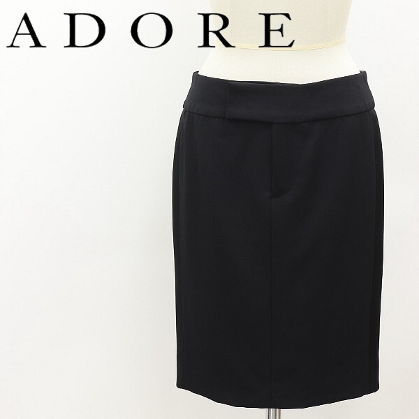 - 美品◆ADORE アドーア シルク サイドライン ウール タイト スカート 黒 ブラック 36