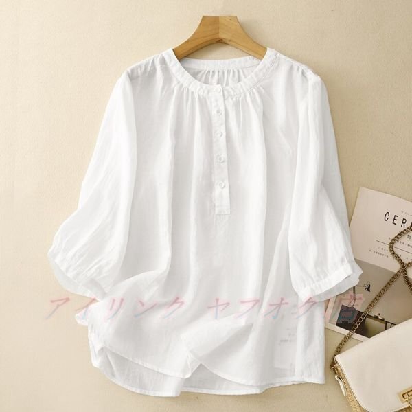 - ☆新品サイズ選択可 カジュアル ブラウス チュニック シャツ 人気 半袖 涼しげ 薄手 きれいめ トップス ホワイト
