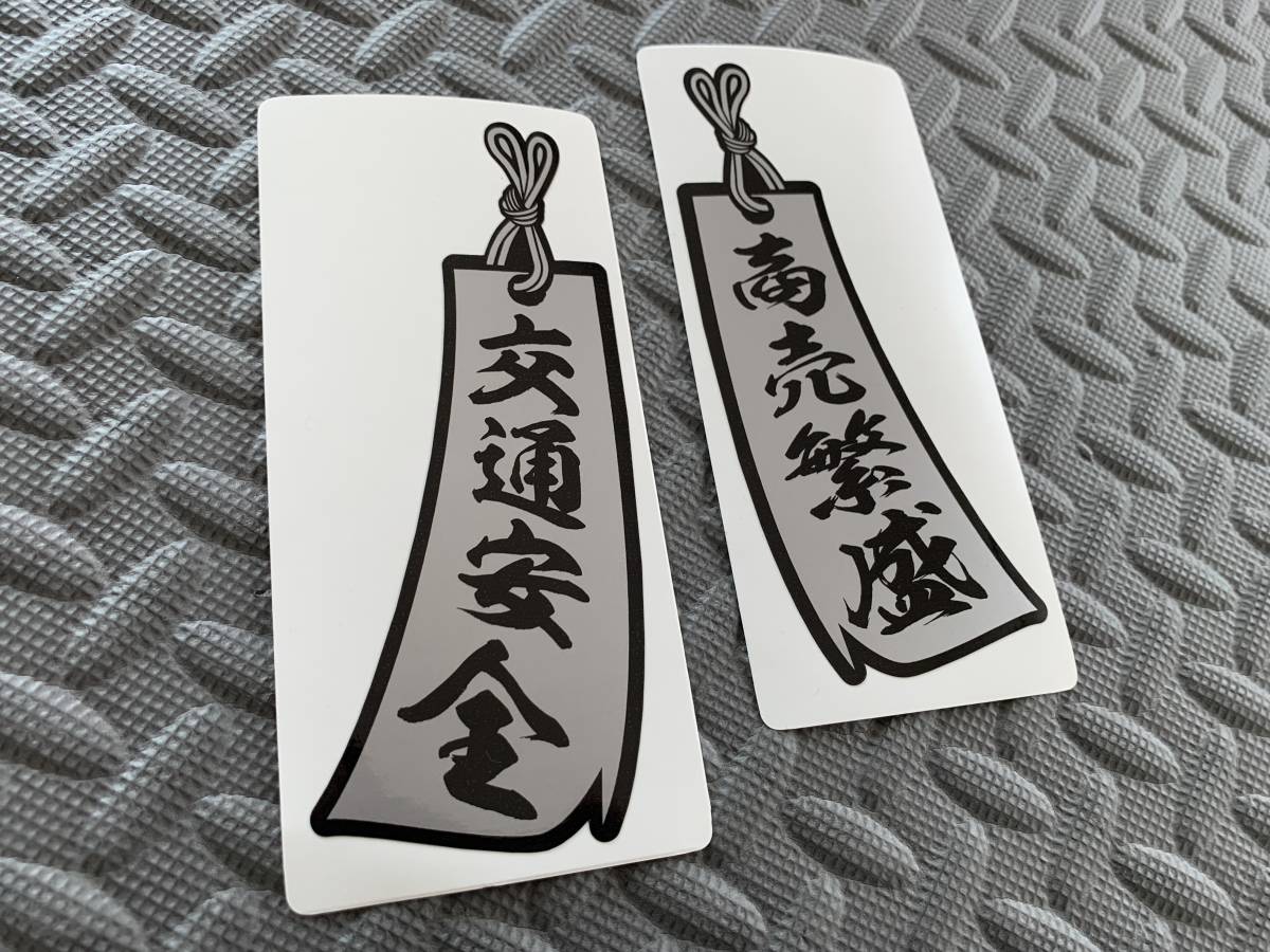 - 送料無料【短冊 交通安全 商売繁盛】防水ステッカー 2枚セット 銀/黒文字 デコトラ アートトラック スクリーン アンドン
