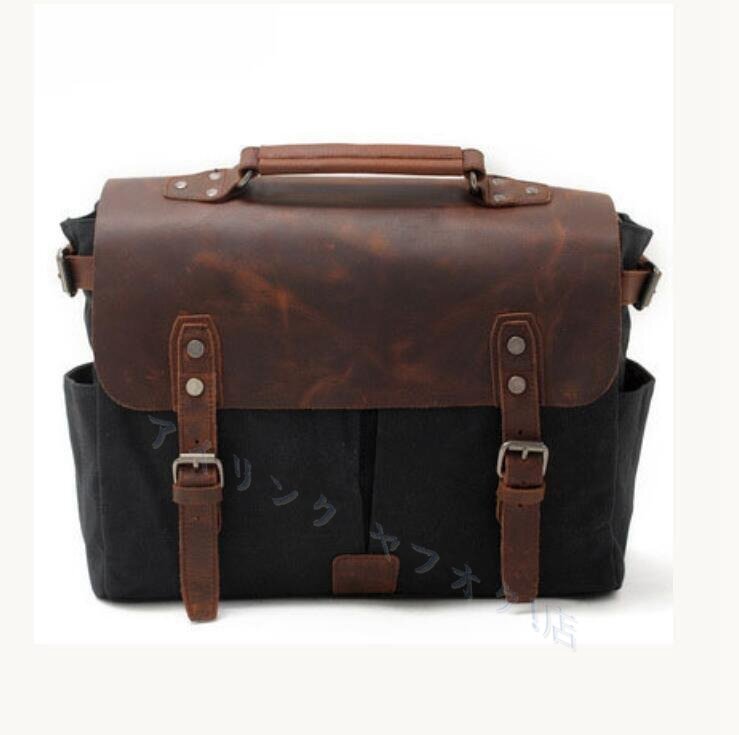 - ☆新品メンズ レトロ ショルダーバッグ ビジネスバッグ メッセンジャーバッグ レザー バッグ カバン 斜め掛け バイクサイドバック 黒