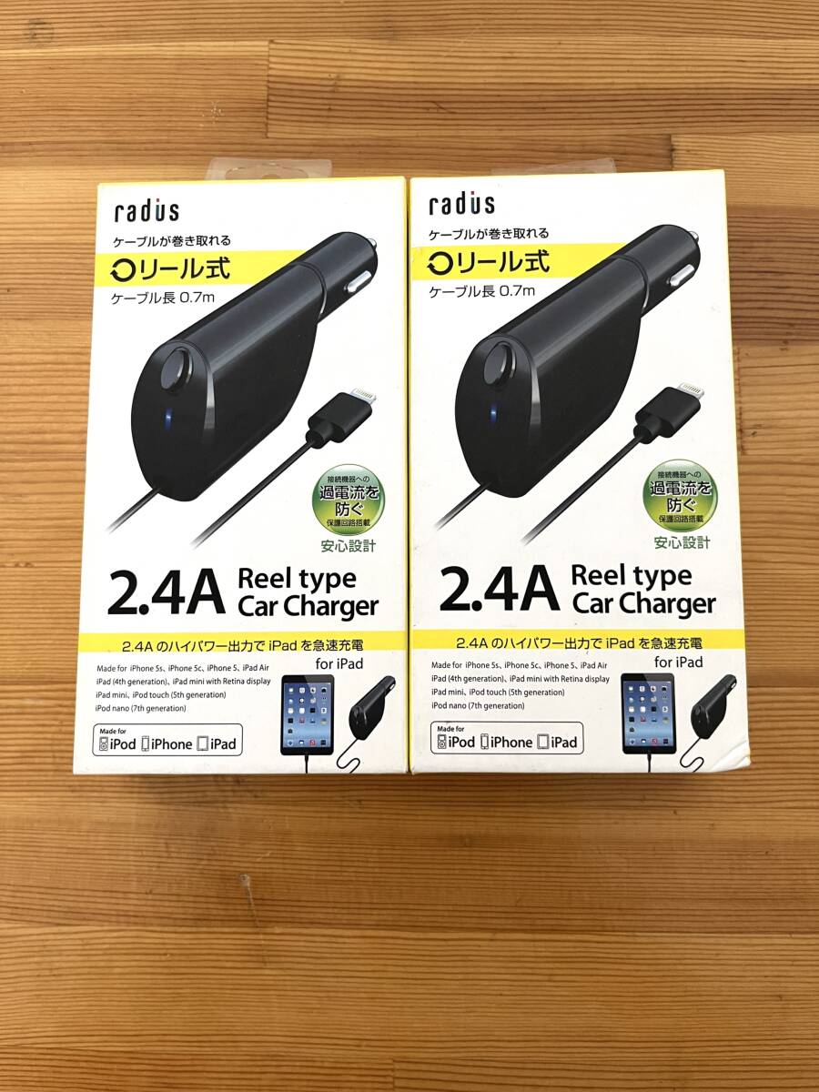 > ラディウス radius AL-CCR11K [2.4A Reel type Car Charger ブラック] 未開封 2個セット