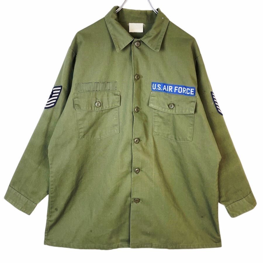 - USエアフォースU.S.AIR FORCE長袖ミリタリーシャツユーティリティシャツファーティーグシャツ米軍アメリカ空軍ワッペン緑グリーン40628