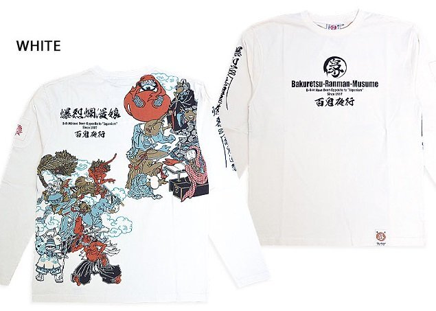 > 妖怪 百鬼夜行 ロングTシャツ◆爆烈爛漫娘 ホワイトSサイズ(サイズ38) RMLT-340 和柄 和風 長袖 エフ商会 efu