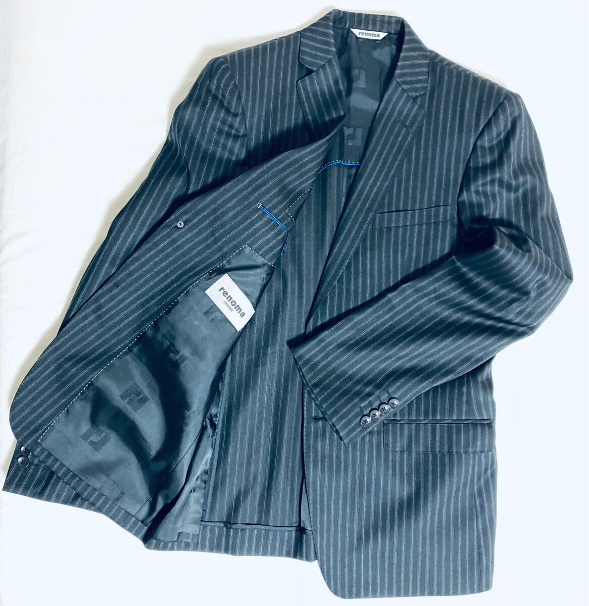 - メンズ スーツ 上下 renoma HOMME SPARKLE BRIGHT BLACK 縦シマ 縫製 日本 サイズA6(説明欄参照) WOOL RICH BLEND
