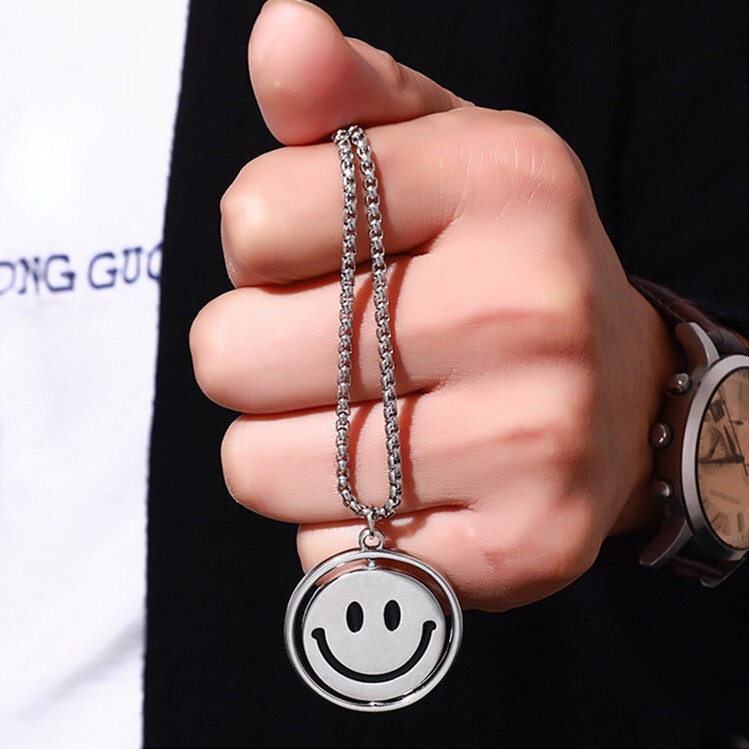 - ニコちゃんマークネックレス 60cmチェーン付き 裏表で表情が、違うネックレス★