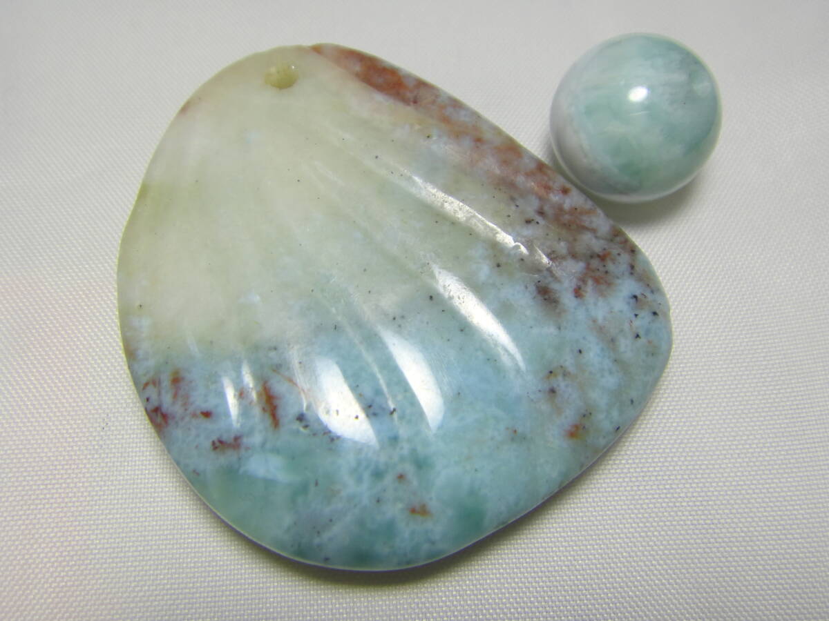 - 天然石 綺麗な色合い! ブルーペクトライト 貝モチーフ トップ 約12.5㎜玉 2点セット