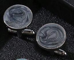 - 【カフスボタン】【カフスボタン】マーブル×ブラック黒 シルバー 丸形