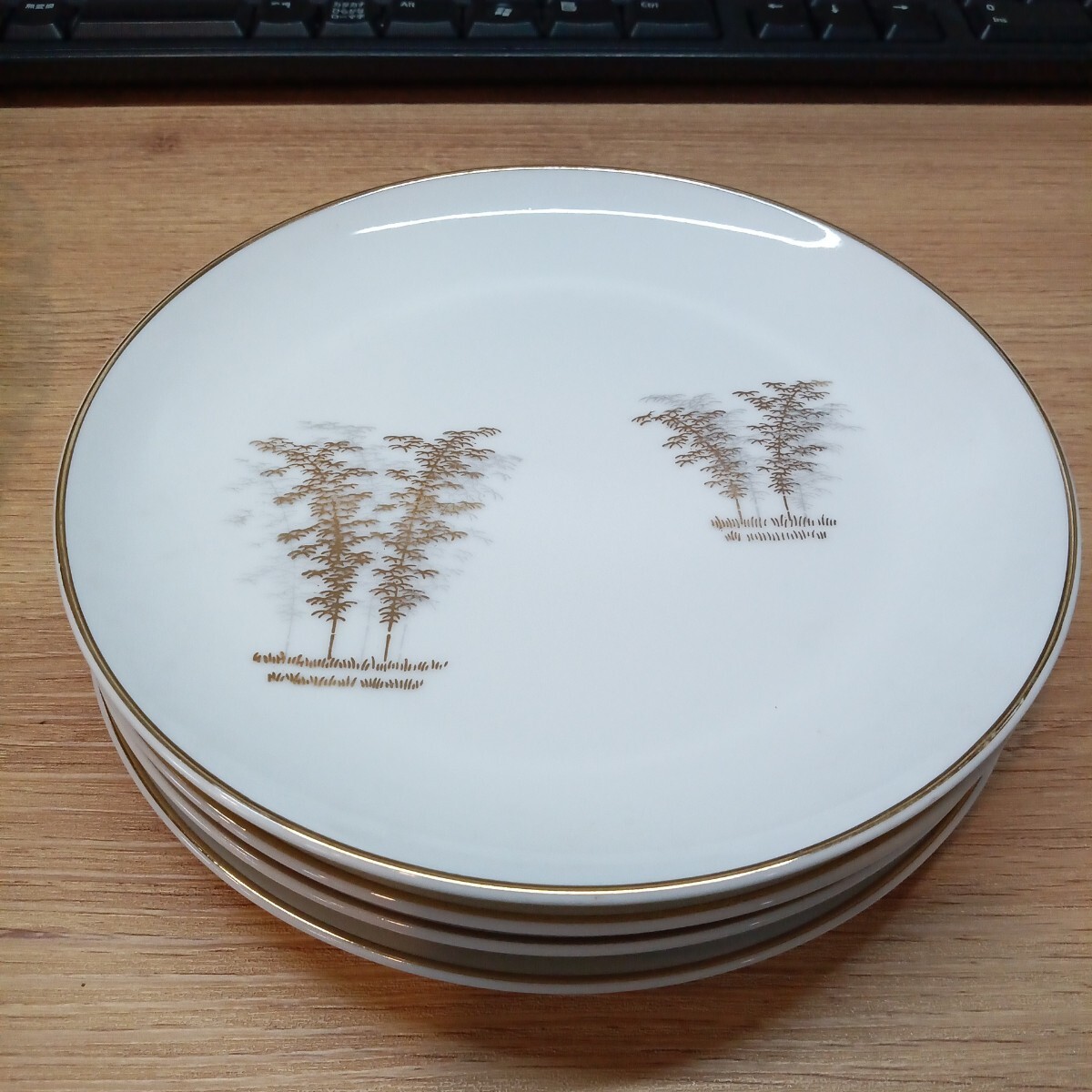 > 有田焼 深川製 金彩 竹模様 取分け皿 約16cm Fukagawa ARITA 宮内庁御用達 深川製磁 オールド 昭和レトロ 計4枚 1029-B2Y-EI4