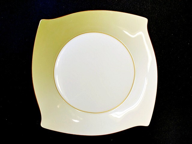 > 3QV売切!税無し☆ナルミ★スクエアデザート皿★フォルテ★ゴールドライン★約24.5cm★グリーン★洋食器★現状★現品限り★1025-5