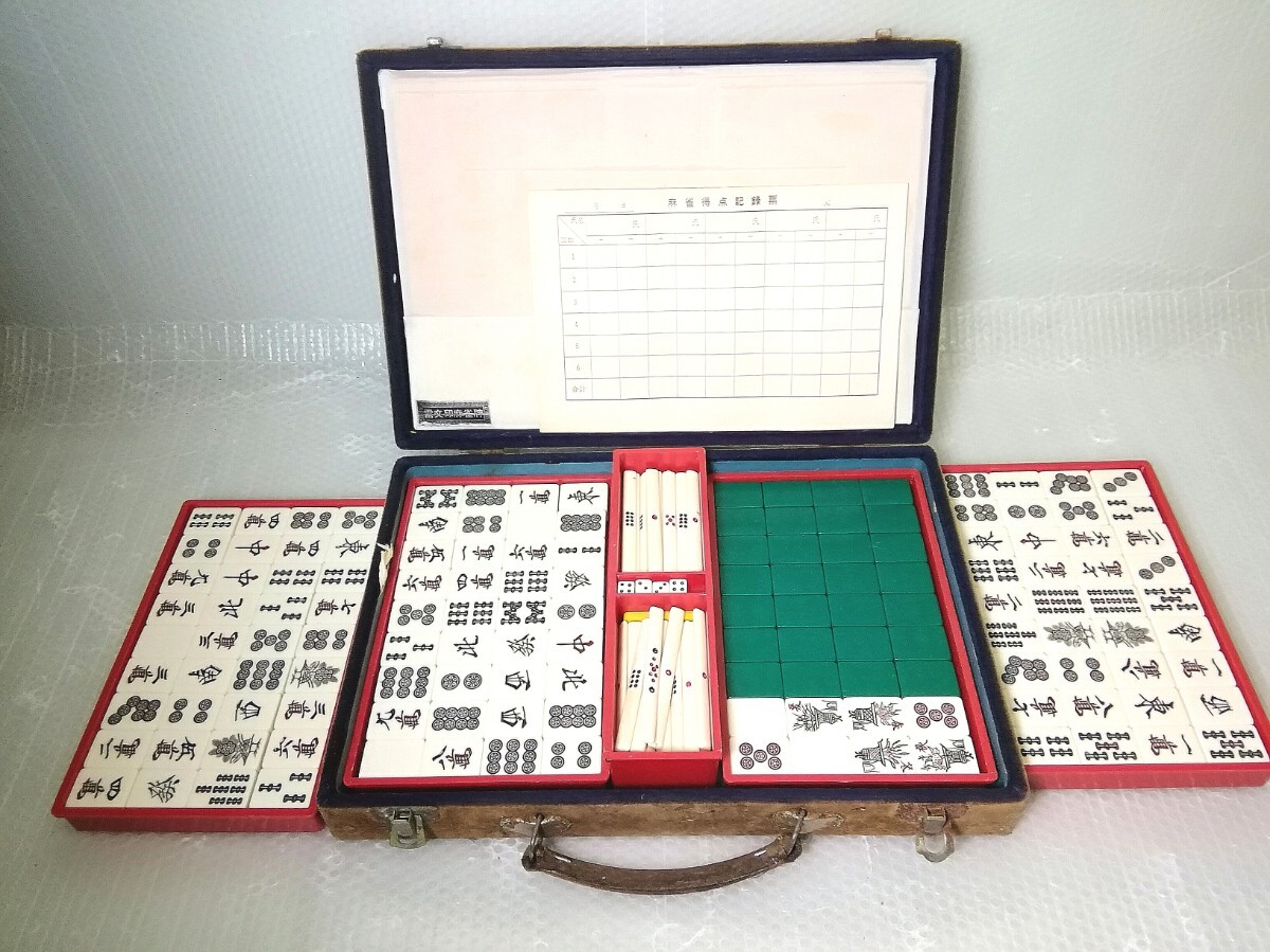 - 昭和レトロ 雷文印麻雀牌 高級 雀荘 本格マージャン 【ジャンク】 ⑱