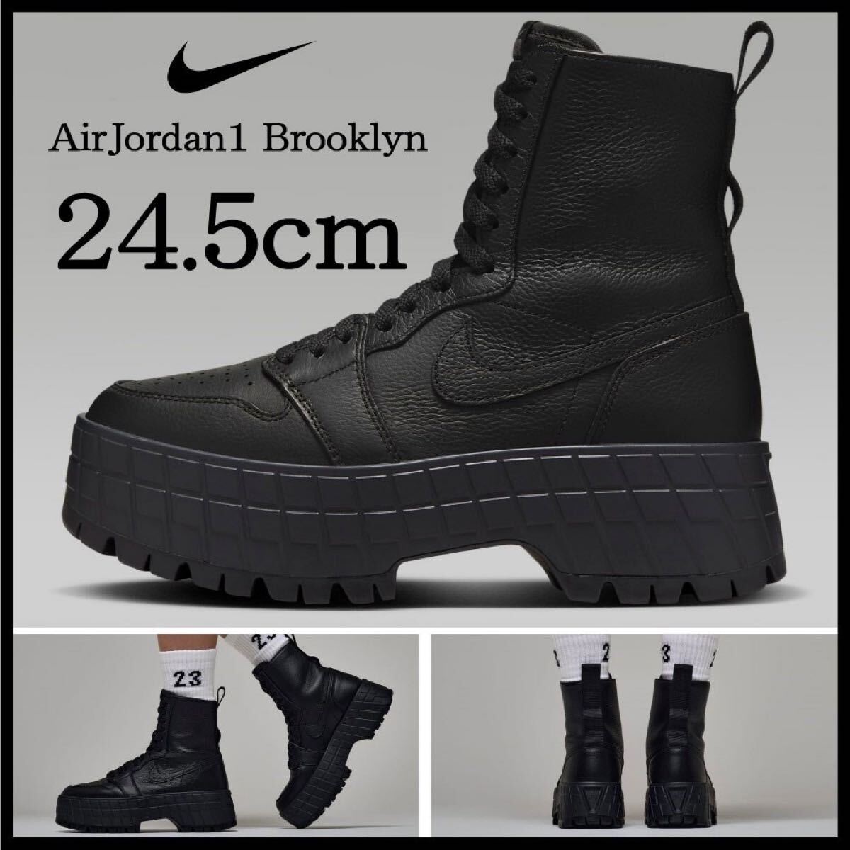 - 【送料無料】【新品】24.5㎝ Nike Women's Air Jordan 1 Brooklyn Blackナイキ ウィメンズ エアジョーダン1 ブルックリン ブラック